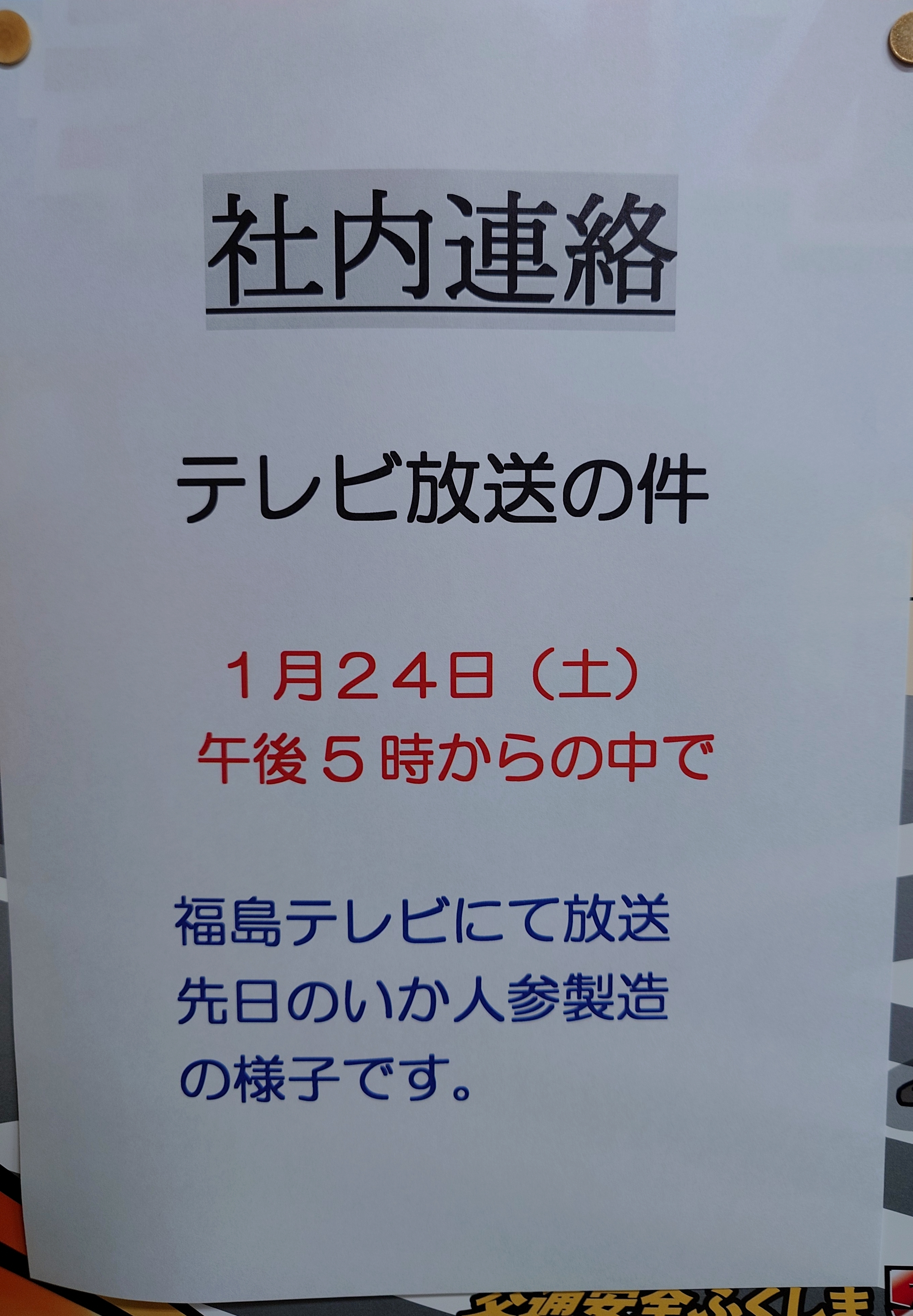 福島テレビさんから連絡が来る
