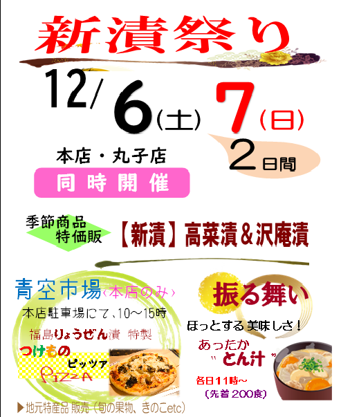 今年も毎年恒例「 新漬祭り 」 12/6(土)7(日)の2日間、